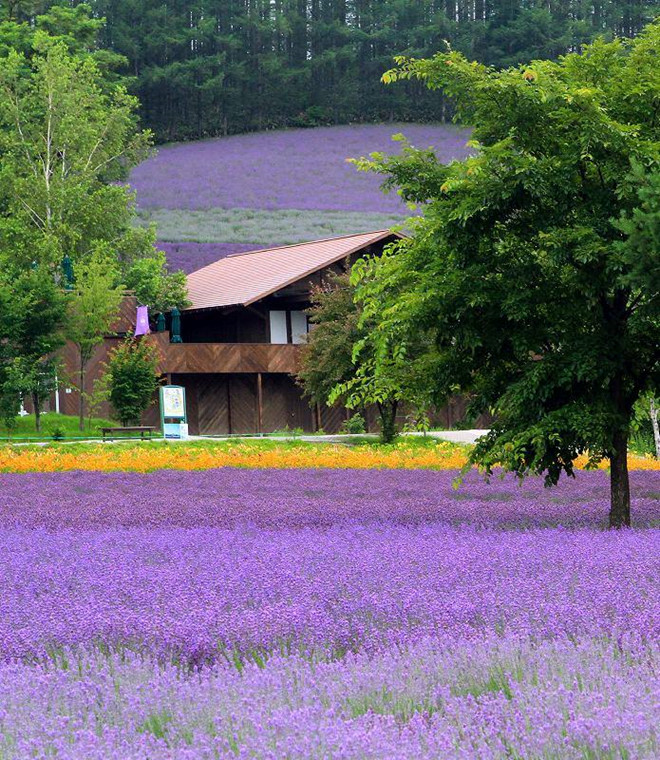 | Những cánh đồng hoa oải hương trải dài bất tận tại Hokkaido, Nhật Bản.